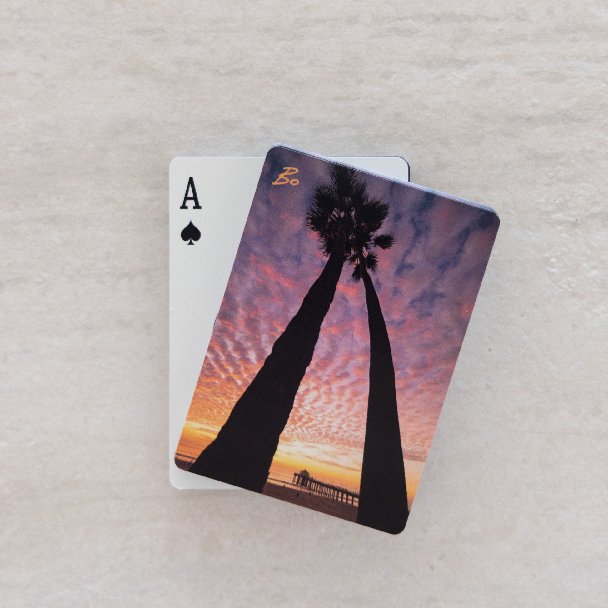 Dive into the deep with this unique deck of 52 playing cards, featuring some iconic Manhattan Beach palm trees. Each card is backed with the Banana Split design, bringing a bold, adventurous touch to every game.